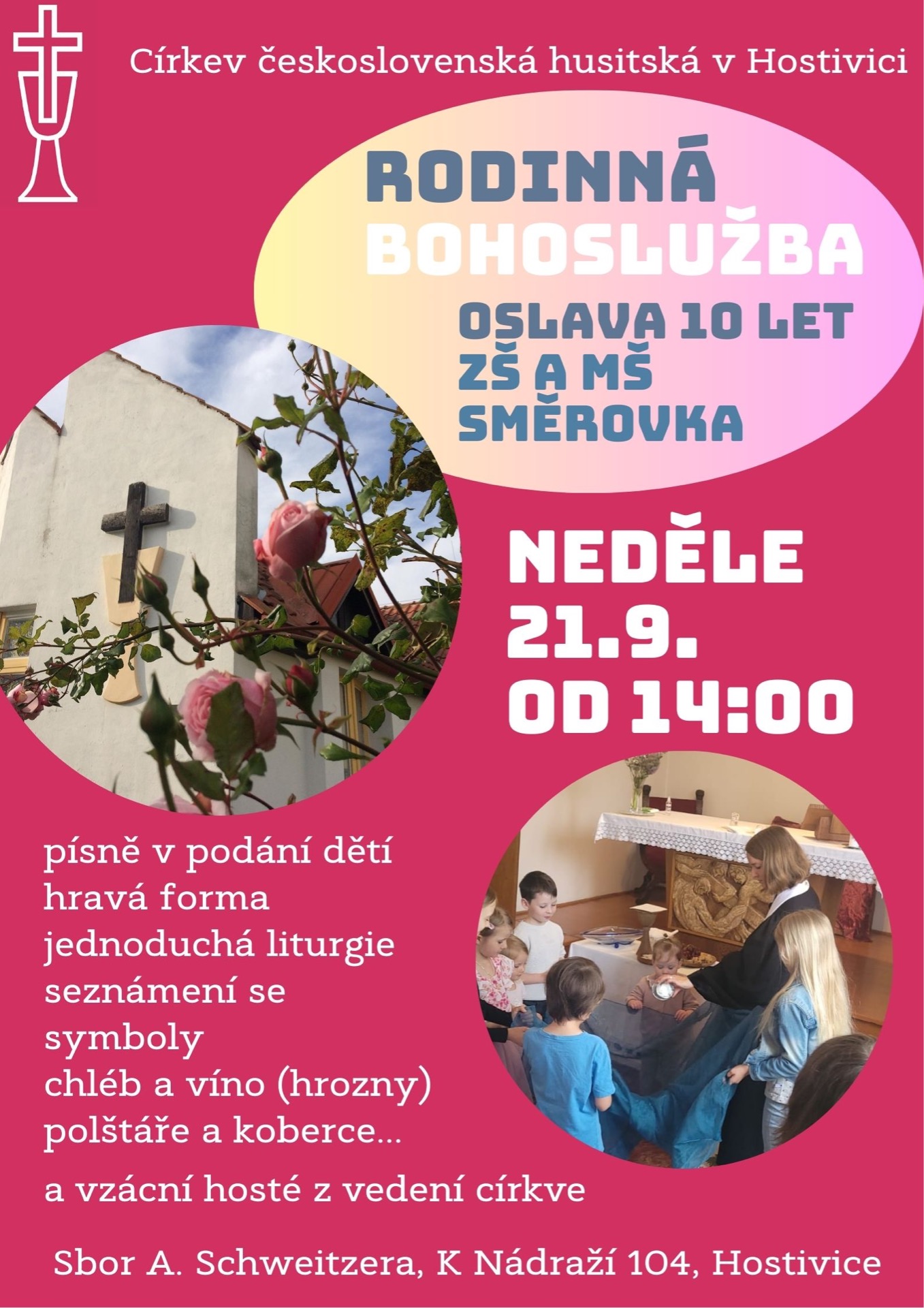 Slavnostní rodinná bohoslužba k oslavě 10. výročí MŠ a ZŠ Směrovka - neděle 21.9. od 14 hodin